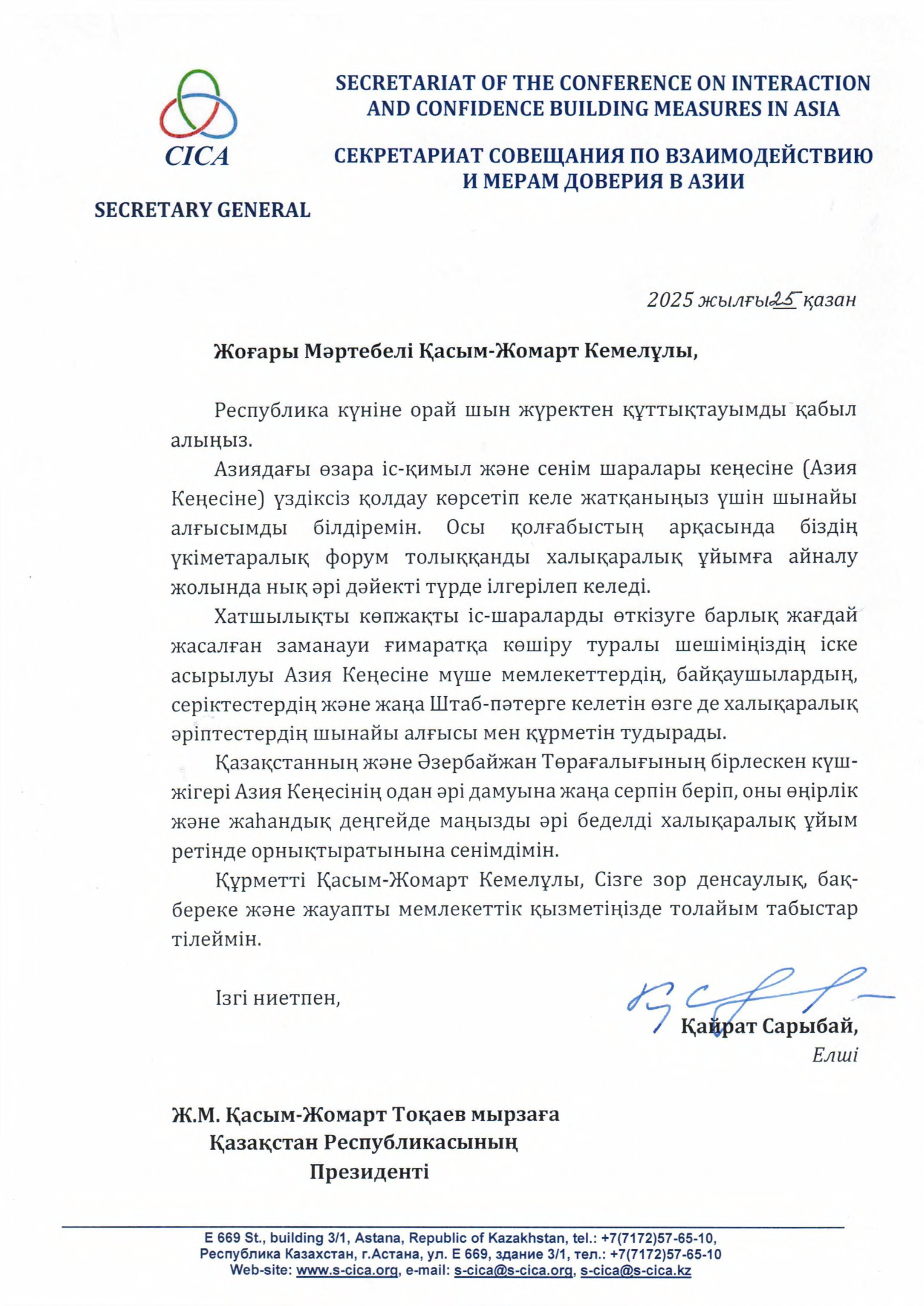 Main news: Inauguration of the new CICA Headquarters in Astana – More details →