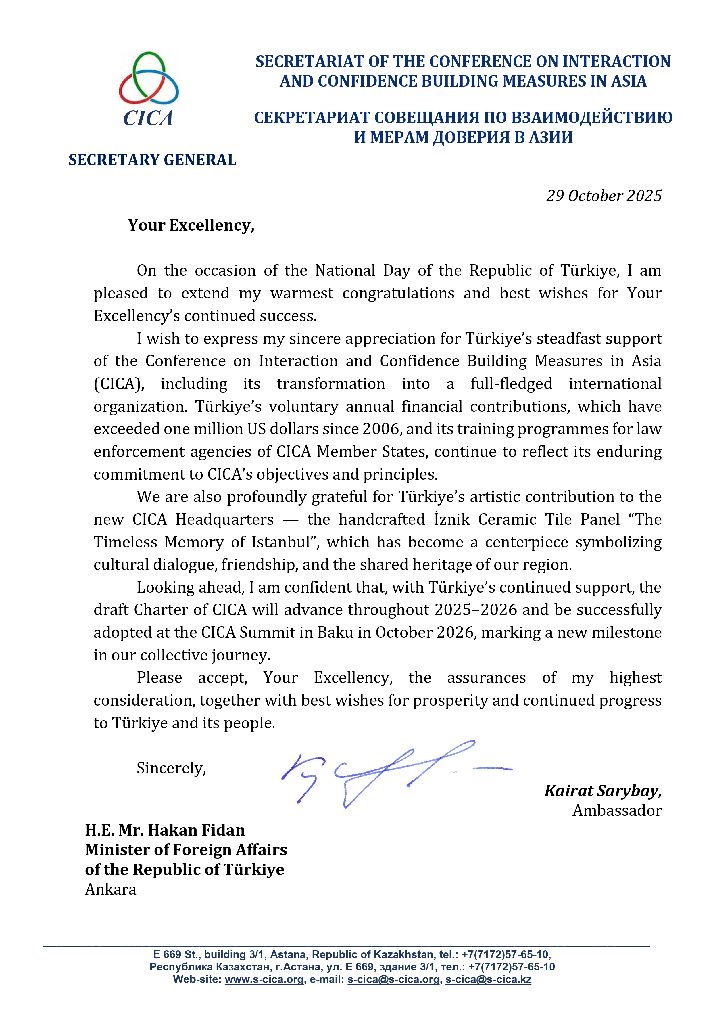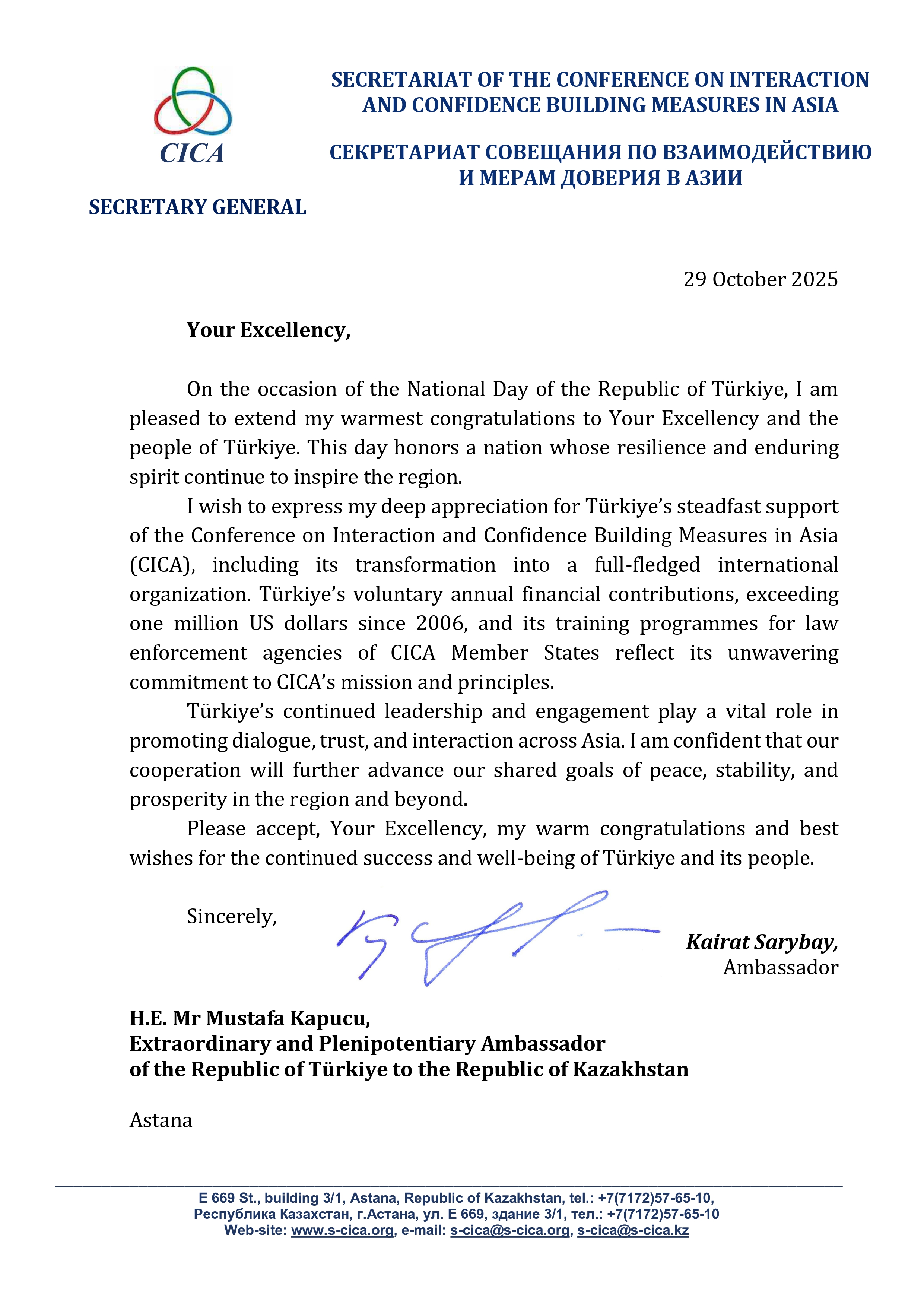 Statements and Remarks of CICA Secretary General Ambassador Kairat Sarybay