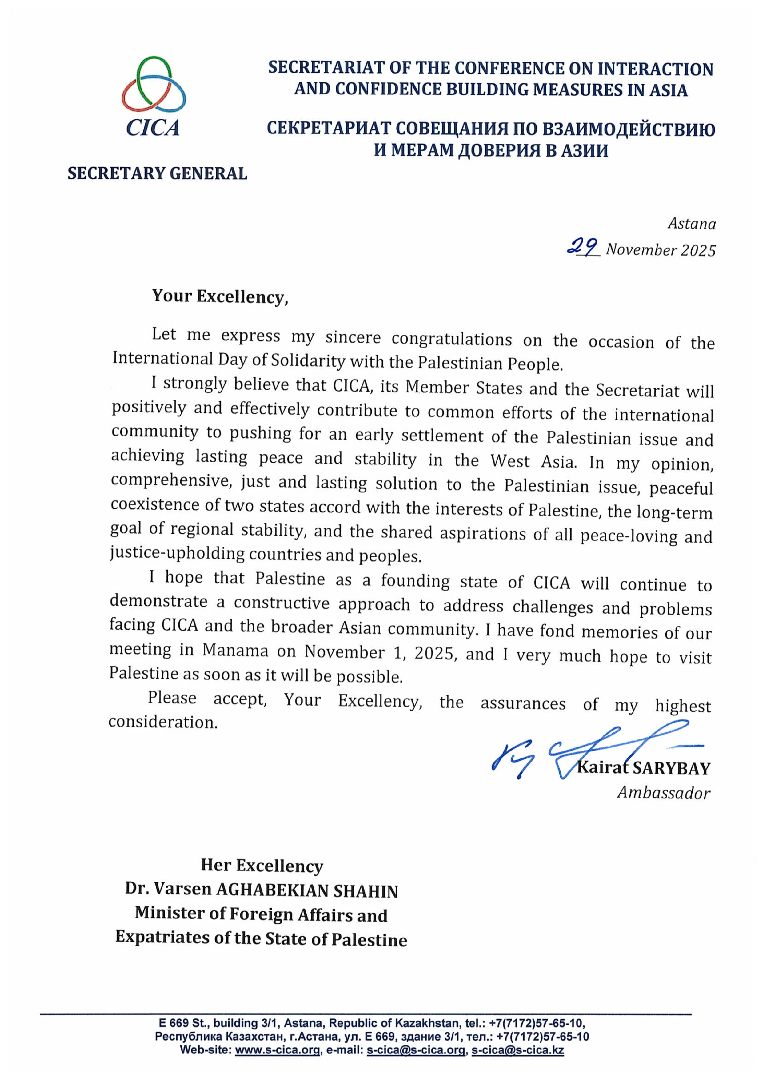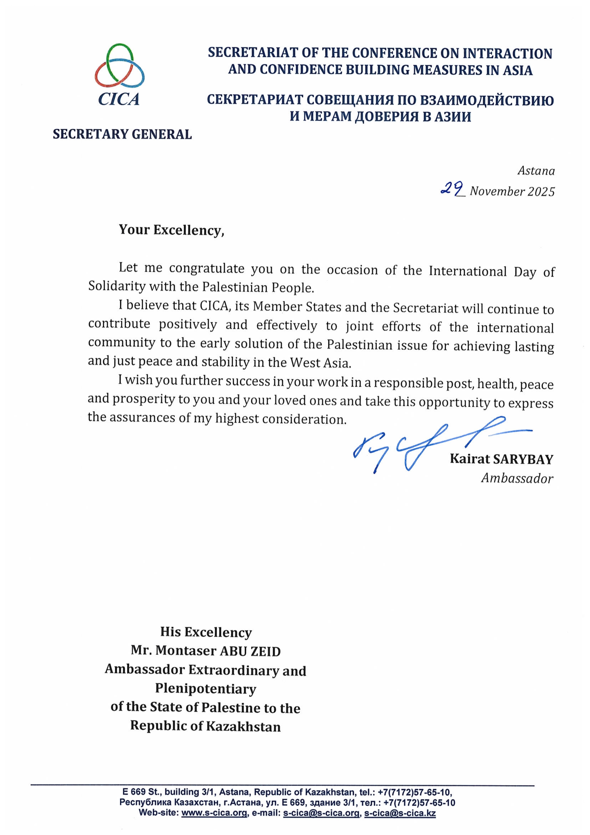 Congratulations on the occasion of the International Day of Solidarity with the Palestinian People