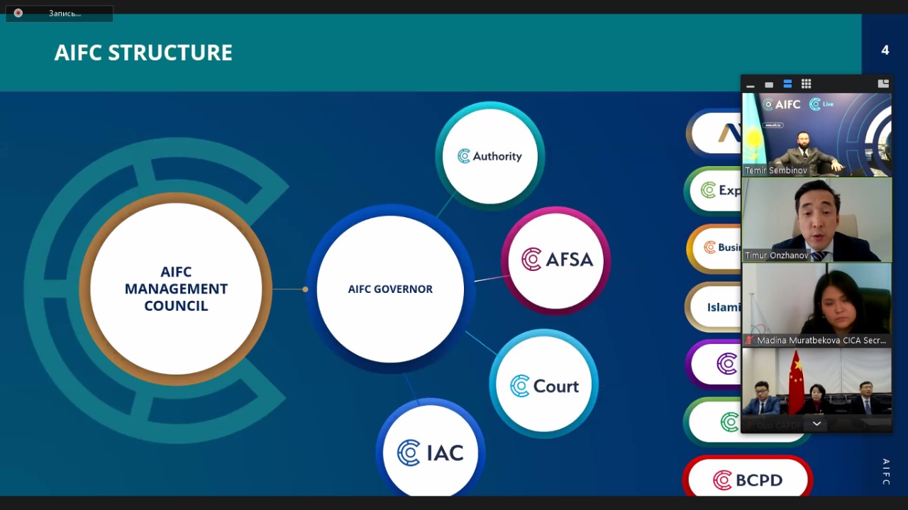 The prospects for development of financial technologies and investment were discussed by the CICA Member States’ representatives of financial structures over the course of an online seminar held on 10 November 2021. The event was organized by the Astana International Financial Center in partnership with the CICA Secretariat. The seminar was attended by representatives of financial and banking structures of Azerbaijan, China, India, as well as participants from Kyrgyzstan, Russia, Turkey and Tajikistan.