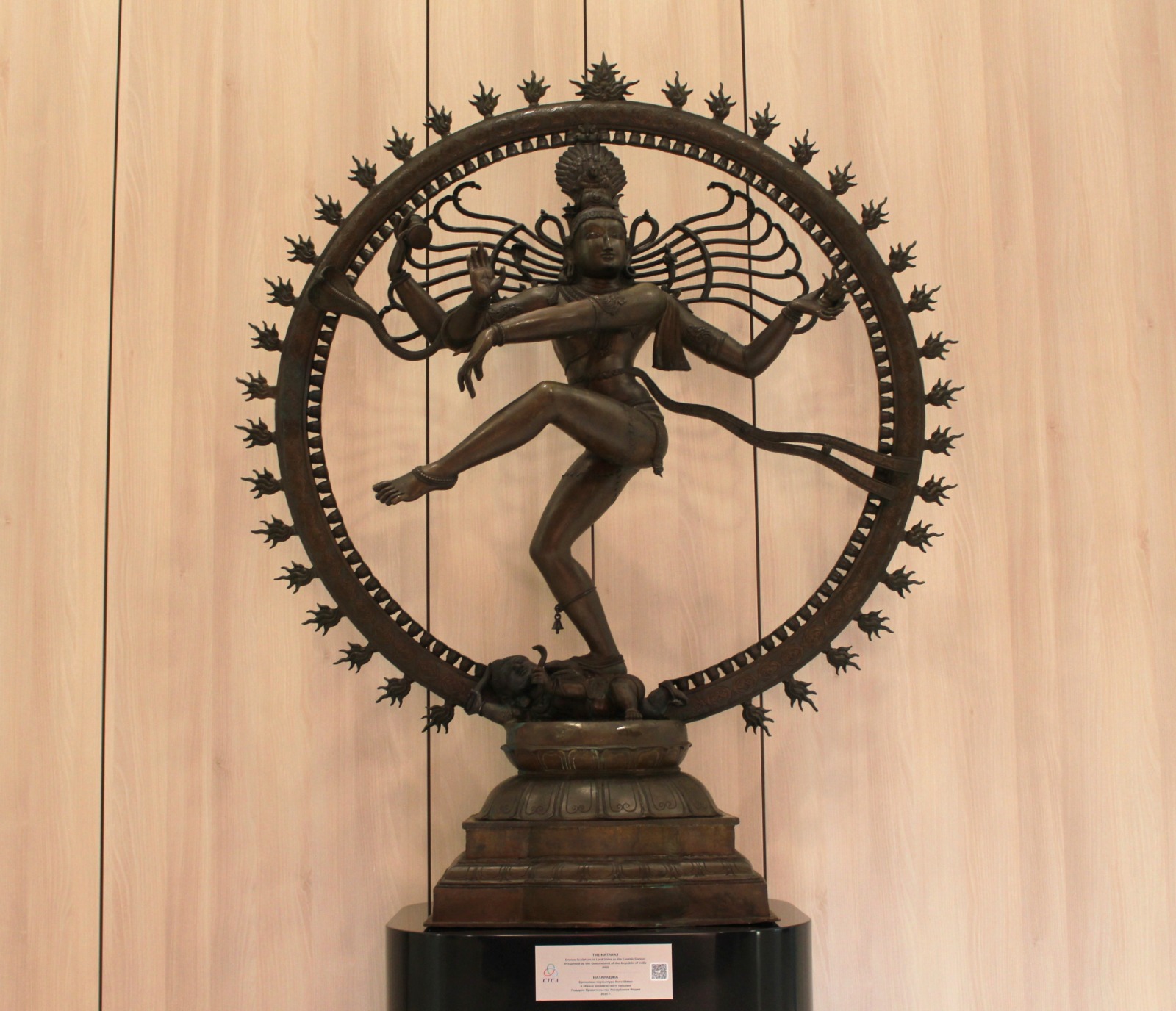 Beyond its spiritual and artistic significance, the Nataraja has also become a global cultural and philosophical symbol. A large bronze replica of Nataraja has been installed at CERN (European Organization for Nuclear Research) in Geneva, presented by the Government of India in 2004. It stands at the heart of a leading global scientific institution, symbolizing the deep connection between ancient Indian philosophy and modern scientific understanding. This gesture of cultural diplomacy highlights how the sculpture of Nataraja serves as a universal representation of cosmic harmony, balance, and transformation.