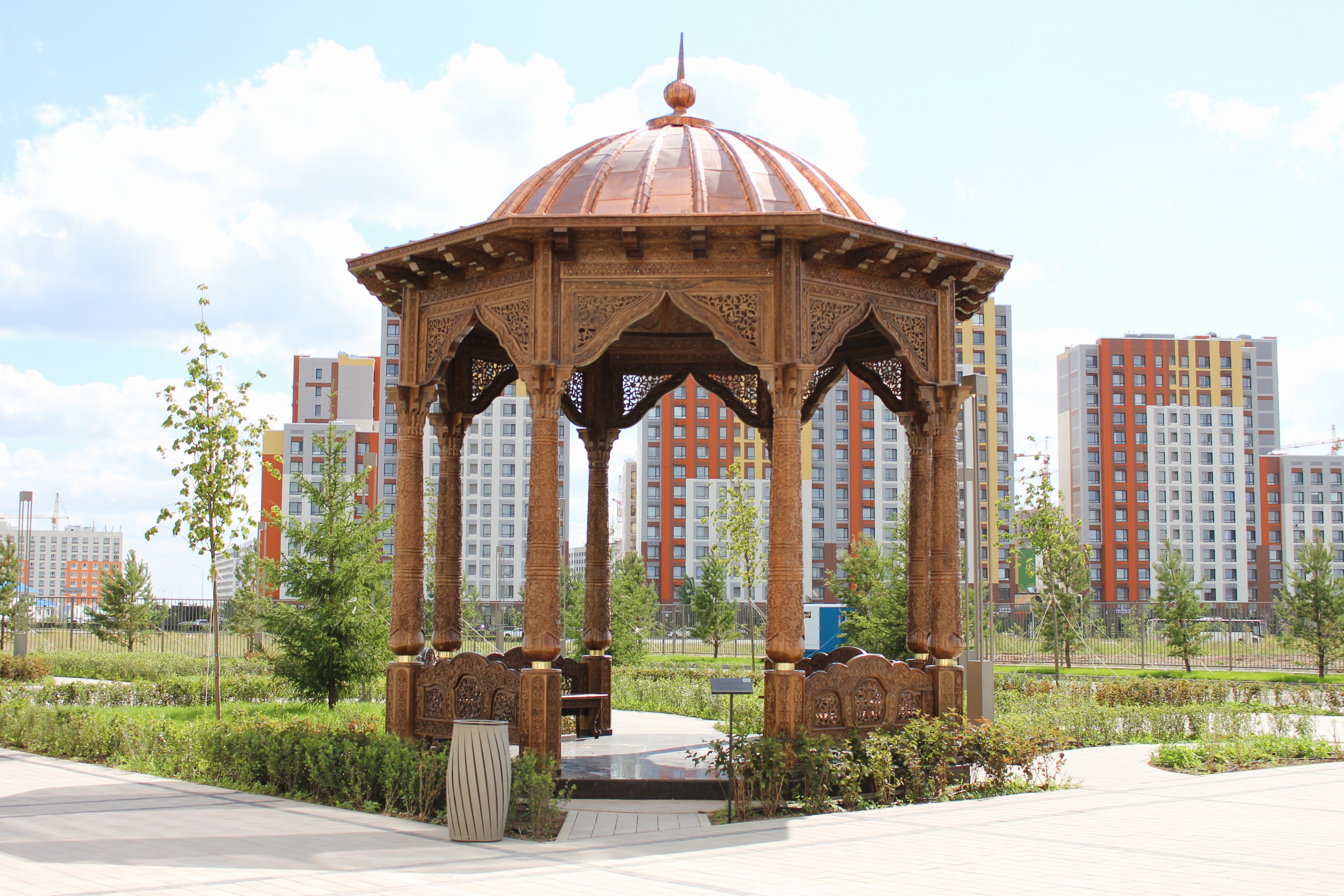 This gazebo, created by the skilled artisans of Samarkand under the guidance of craftsman M. Assadov, embodies the rich traditions of Uzbek architecture, as well as its decorative and applied arts.