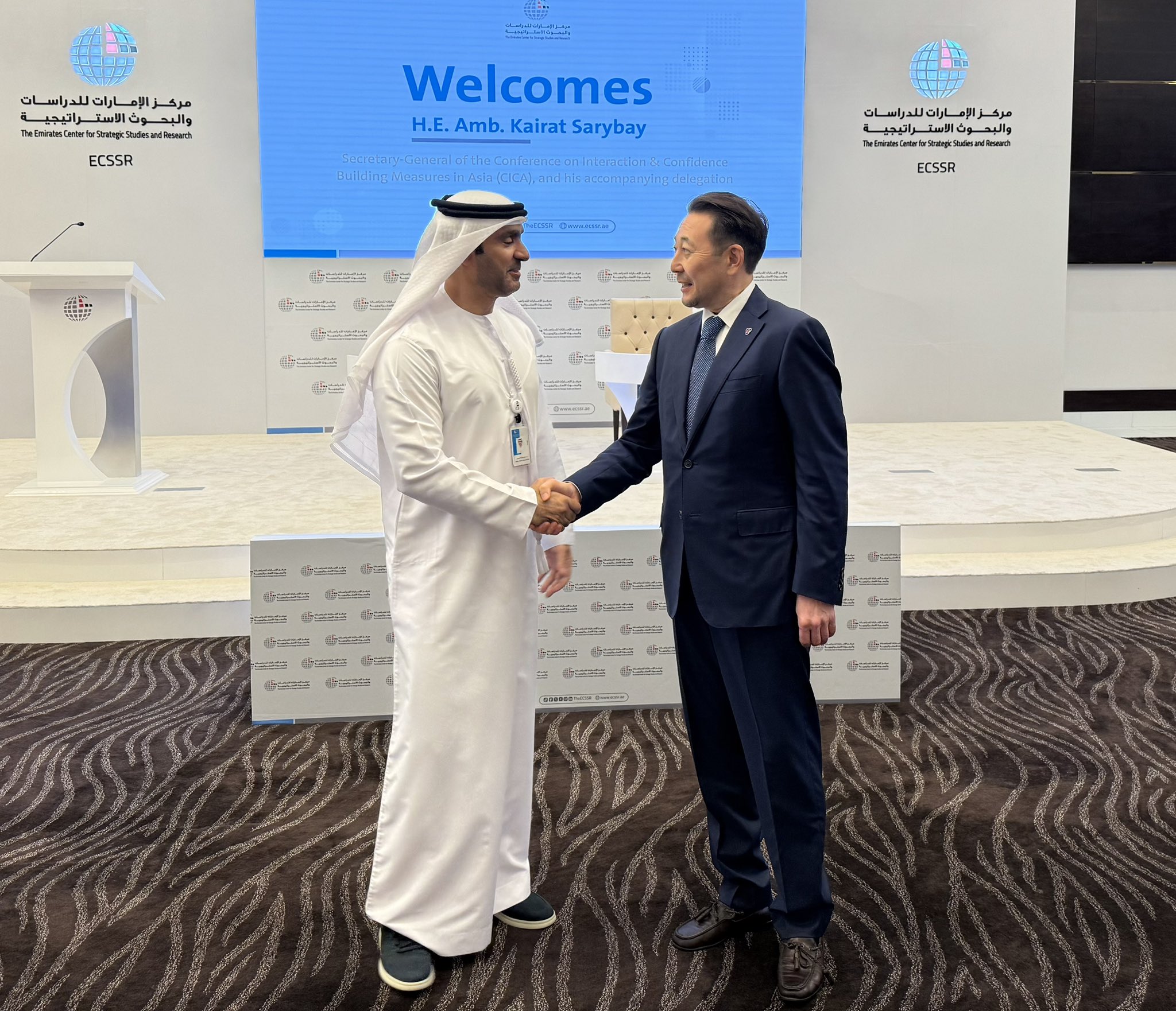 Абу-Даби, 8-9 декабря 2025 года — Генеральный секретарь Совещания по взаимодействию и мерам доверия в Азии (СВМДА) Посол Кайрат Сарыбай совершил рабочий визит в Абу-Даби для проведения консультаций с высокопоставленными должностными лицами Объединенных Арабских Эмиратов.